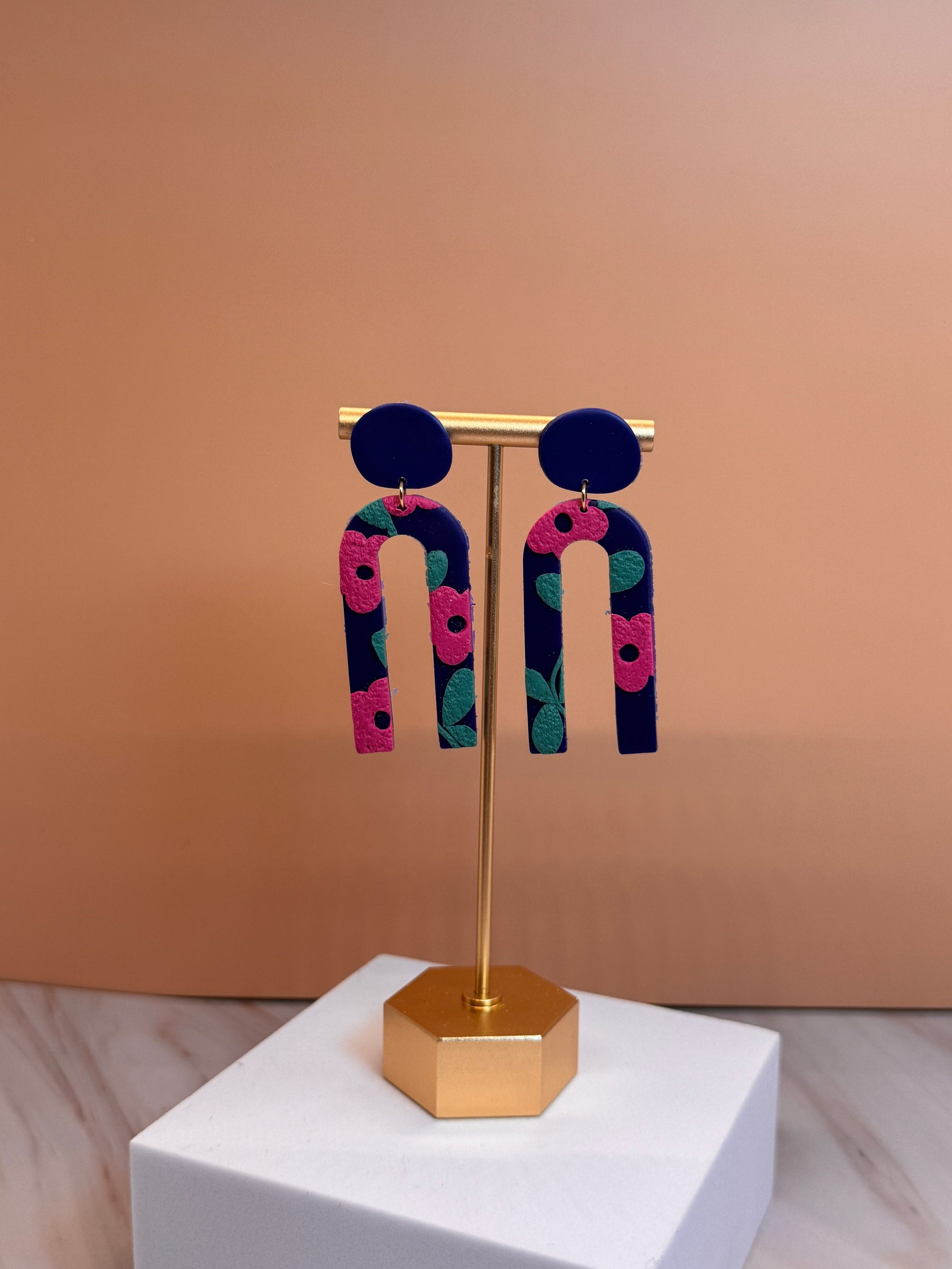 Our earrings are handmade with polymer clay for a lightweight feel and assembled with hypoallergenic hardware and 6MM Titanium Posts . All of our polymer clay earrings and accessories are designed and handmade in St Louis, Missouri.