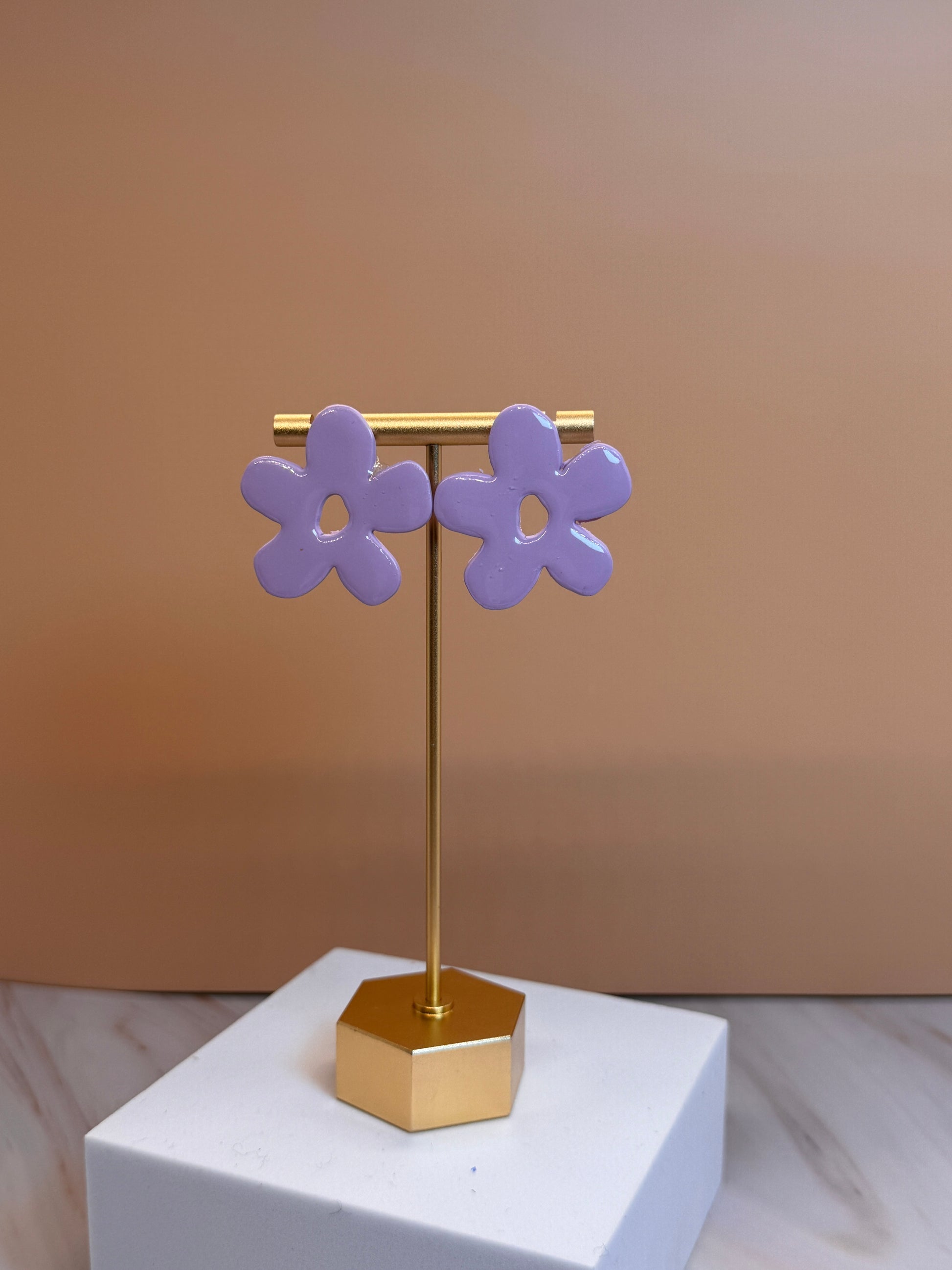 Our earrings are handmade with polymer clay for a lightweight feel and assembled with hypoallergenic hardware and 6MM Titanium Posts . All of our polymer clay earrings and accessories are designed and handmade in St Louis, Missouri.