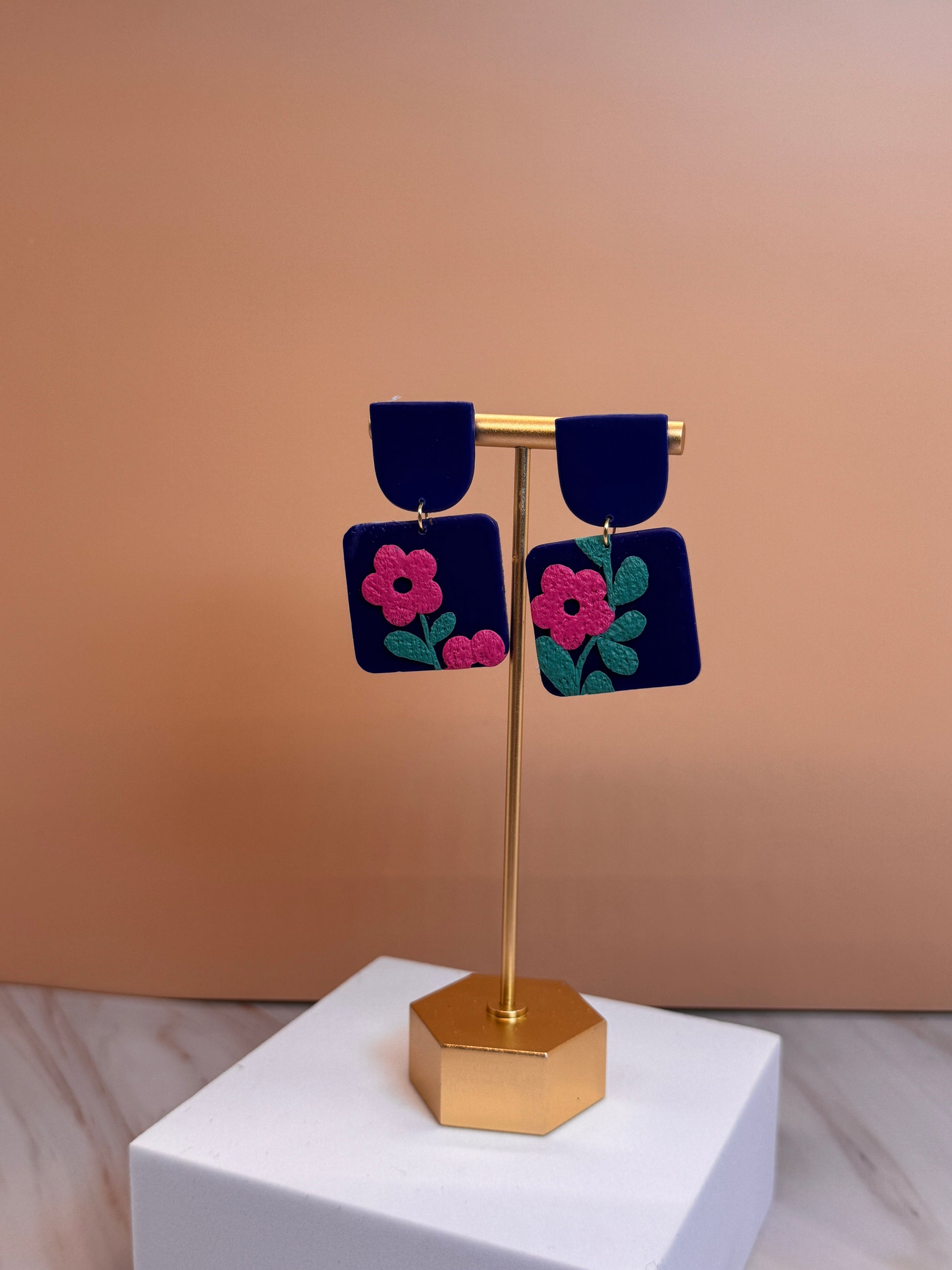 Our earrings are handmade with polymer clay for a lightweight feel and assembled with hypoallergenic hardware and 6MM Titanium Posts . All of our polymer clay earrings and accessories are designed and handmade in St Louis, Missouri.