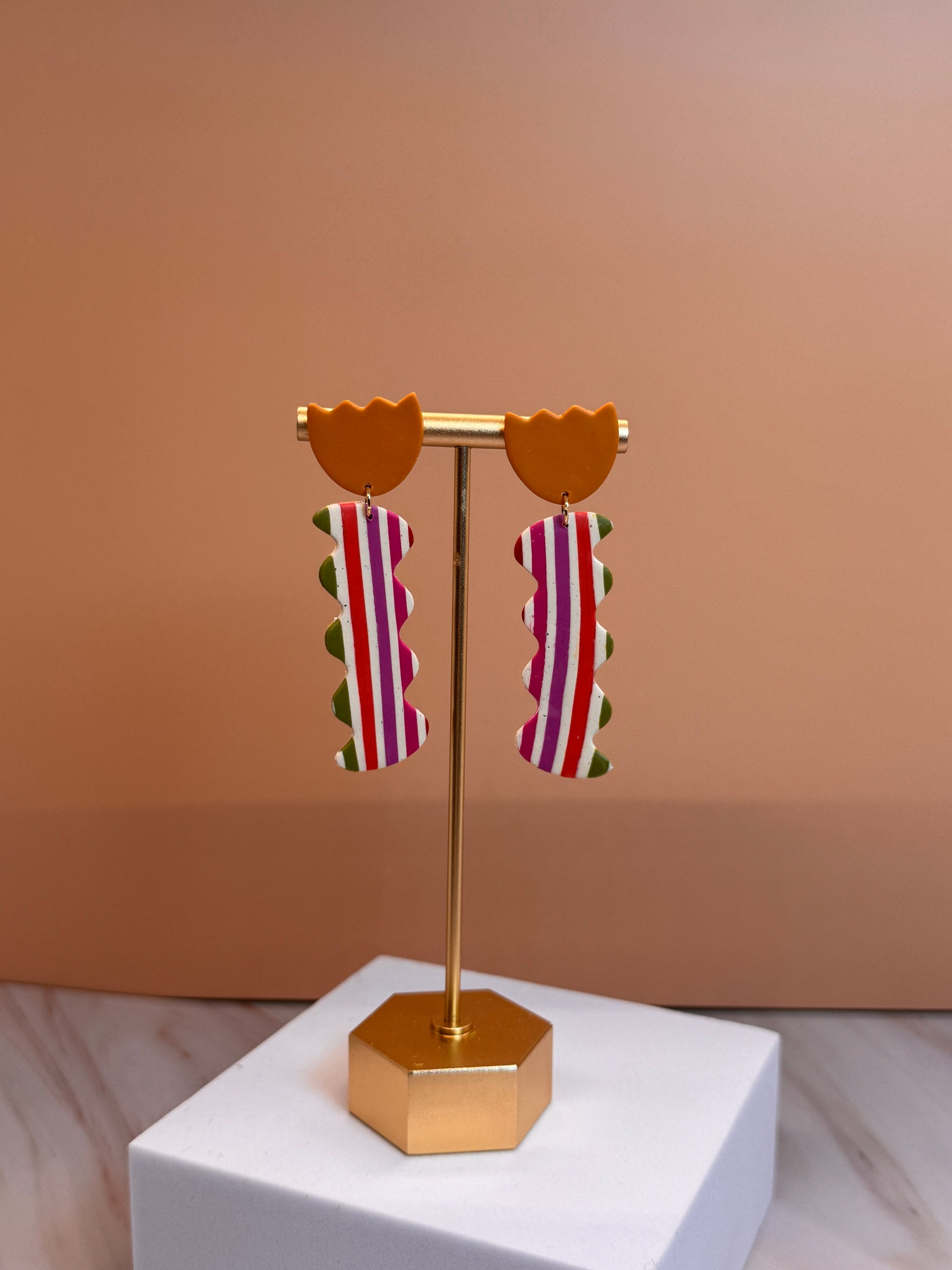 Our earrings are handmade with polymer clay for a lightweight feel and assembled with hypoallergenic hardware and 6MM Titanium Posts . All of our polymer clay earrings and accessories are designed and handmade in St Louis, Missouri.